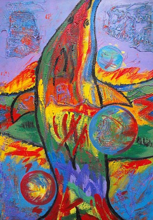Een globale impressie van het schilderij "Dolfijn" 70x100cm.
