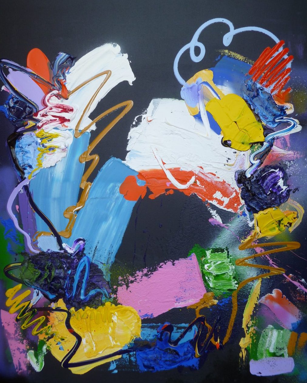 Acryl / mixed op linnen - abstract expressief werk - inclusief baklijst - kleurrijk