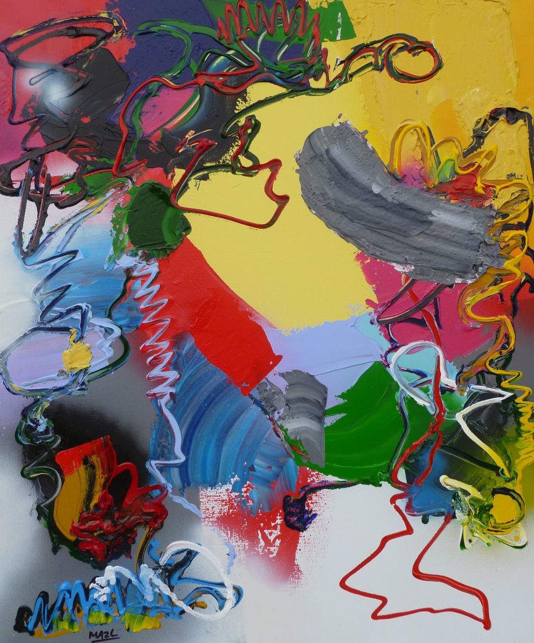 Acryl / mixed op linnen - abstract expressief werk - inclusief baklijst - kleurrijk