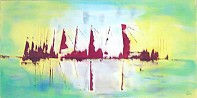 Acrylverf schilderij. Eilandjes in het wolderwijd bij Harderwijk