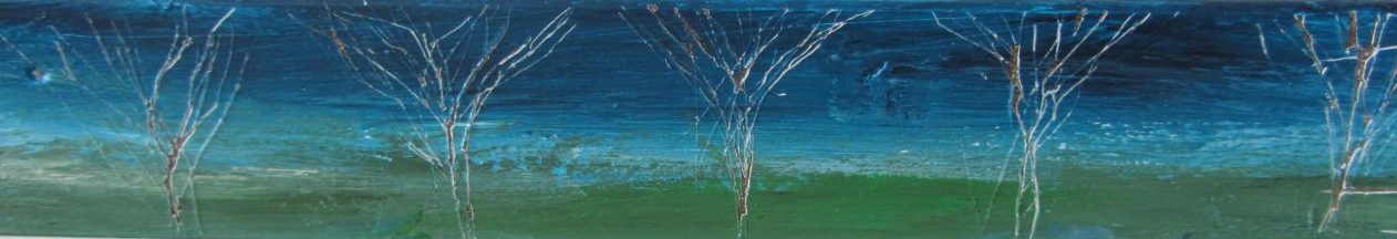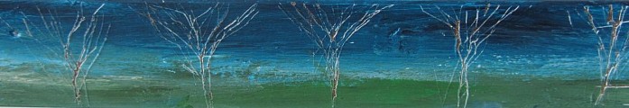 Het hout is beschilderd met acrylverf en bewerkt met gutsen.