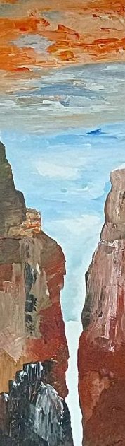 Een globale impressie van het schilderij "Diepgang!" 30x100cm.