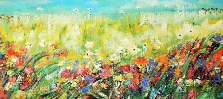 Een globale impressie van het schilderij "In de berm" 150x70cm.