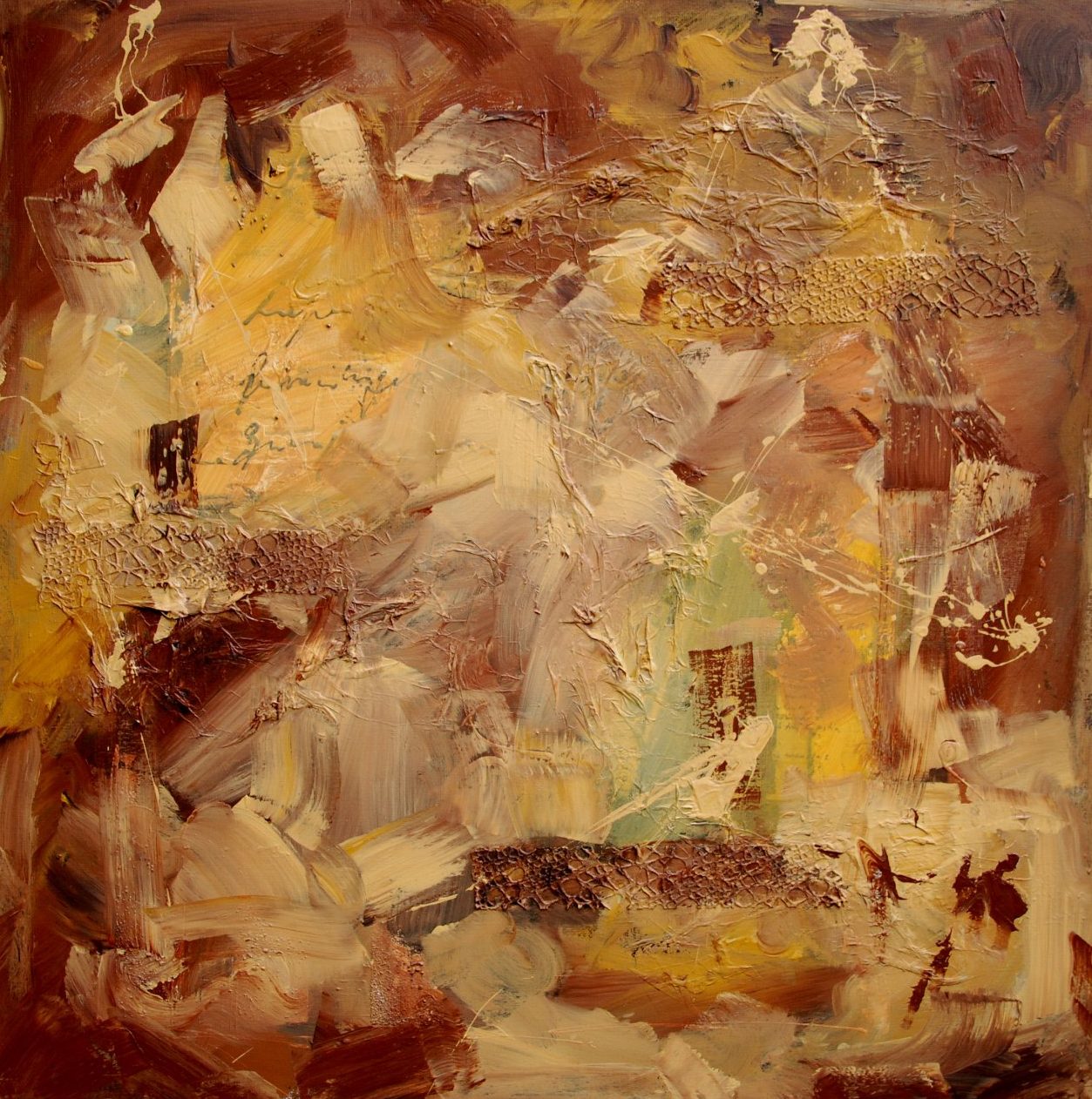 Een globale impressie van het schilderij "Ms Brown" 90x90cm.