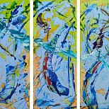 Een globale impressie van het schilderij "Afdaling" 100x100cm.