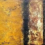 Een globale impressie van het schilderij "Signs of winter" 80x40cm.