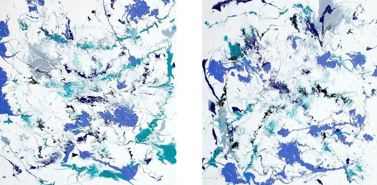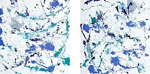 Tweeluik 2 x 50 x 50 in paarse en groene tinten.