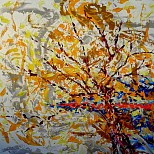 Een globale impressie van het schilderij "De brug" 100x100cm.