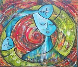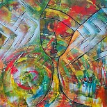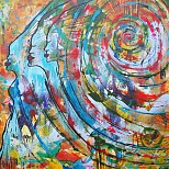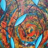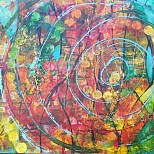 Een globale impressie van het schilderij "Circle of thoughts" 70x60cm.