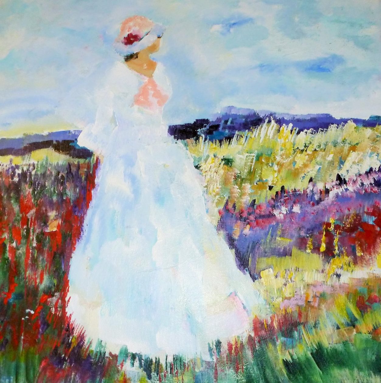 Een globale impressie van het schilderij "Romantisch" 100x100cm.
