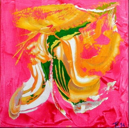 Een globale impressie van het schilderij "Werk" 40x40cm.