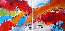 Zeer helder kleurrijk abstract tweeluik