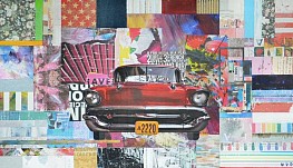 Modern, Abstract, Mixed media schilderij, opgebouwd uit diverse lagen (dekkend en transparant) en met verschillende materialen.