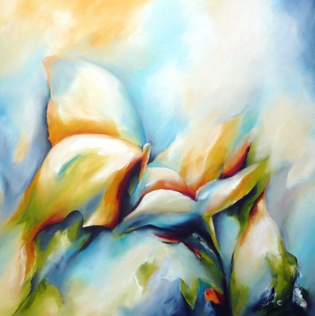 Een globale impressie van het schilderij "Butterfly" 70x70cm.