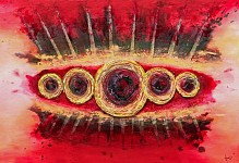 Acryl en RVS op canvas.