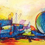 Een globale impressie van het schilderij "City Walls" 120x100cm.