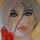Gemengde techniek met acryl, op paneel, ingelijst in houten baklijst