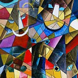 Acryl op paneel, ingelijst in zwarte baklijst
