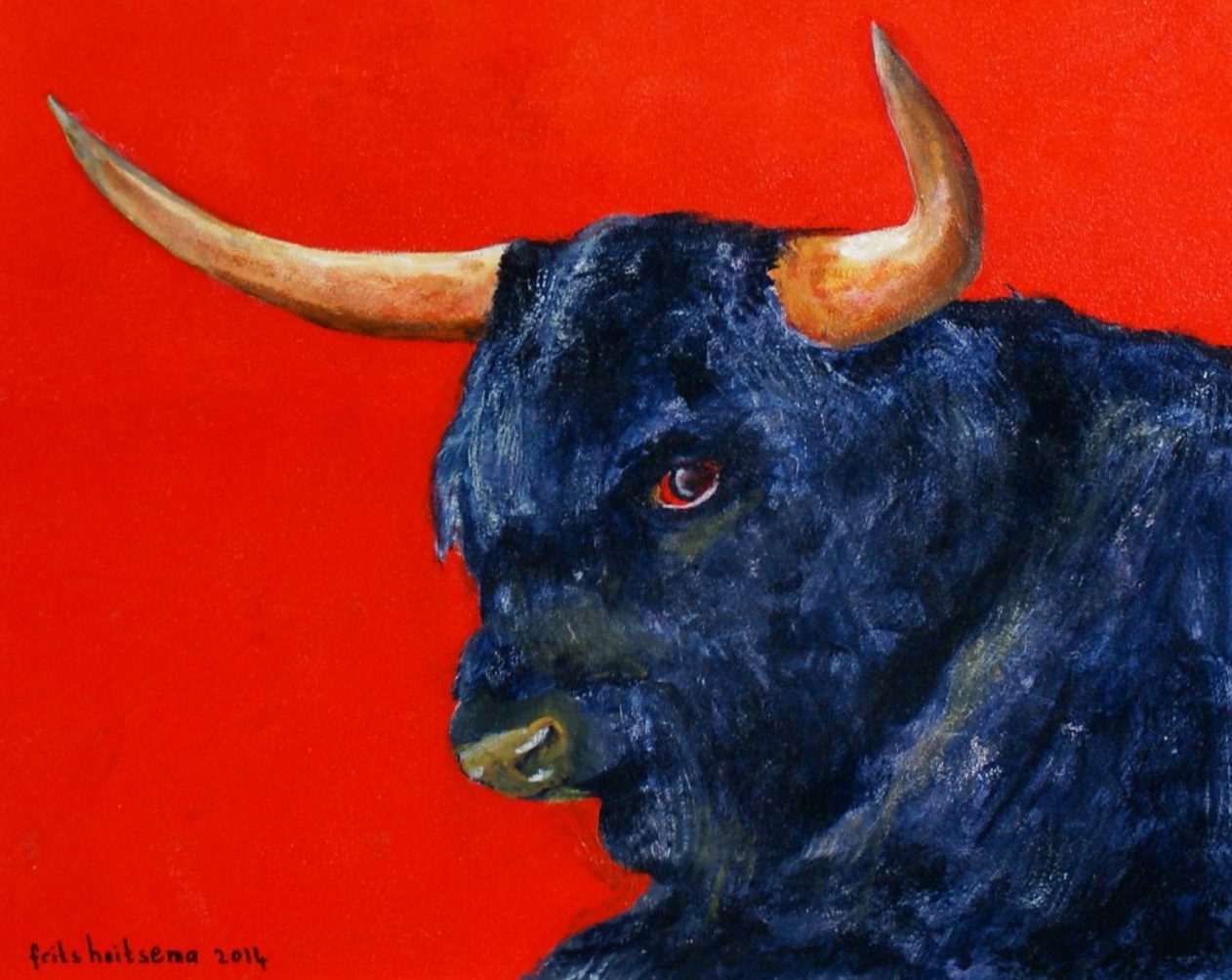 Een globale impressie van het schilderij "Stier" 40x30cm.
