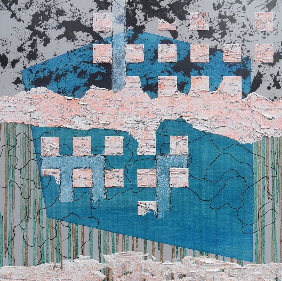 Klein abstract werk uitgevoerd in Lakverf - Olieverf en Inkt op geprepareerd aluminium (perfect in combinatie met Irregular Pentagon nr. 1)