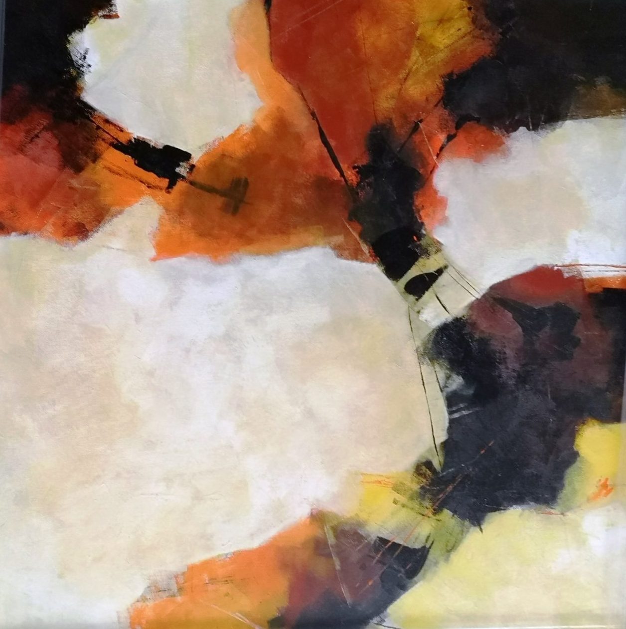 Een globale impressie van het schilderij "Connected" 80x80cm.