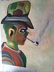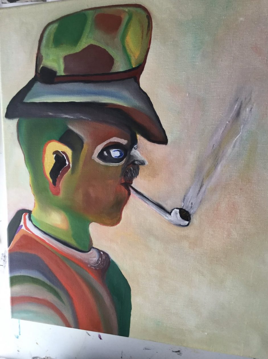 Een globale impressie van het schilderij "De pijproker" 50x60cm.