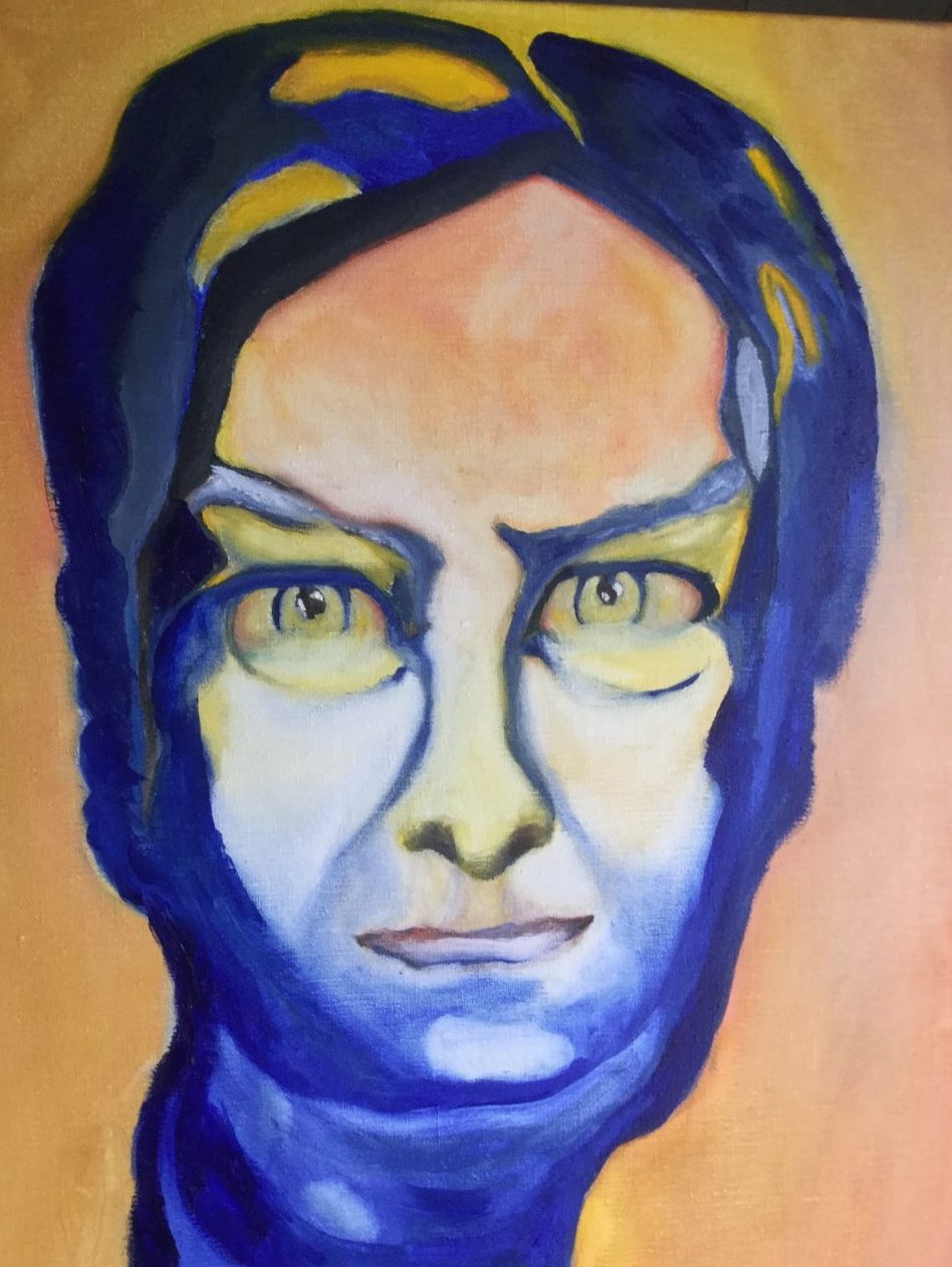 Een globale impressie van het schilderij "Hipnotiseur" 50x60cm.