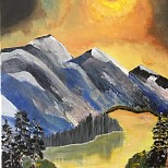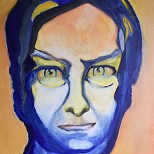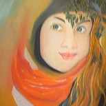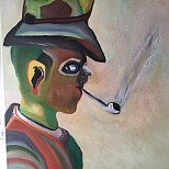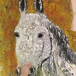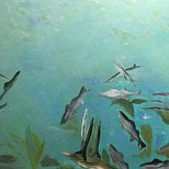 Een globale impressie van het schilderij "Opa met kleindochter aan zee" 60x70cm.