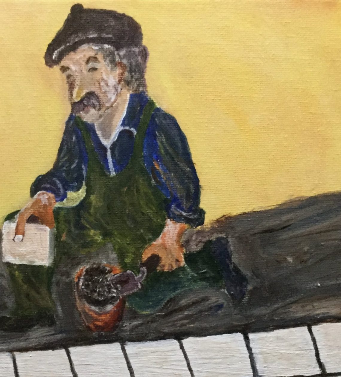 Een globale impressie van het schilderij "Tyles setter 2020" 20x20cm.