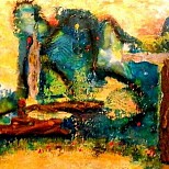 Een globale impressie van het schilderij "Geen titel" 50x50cm.
