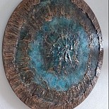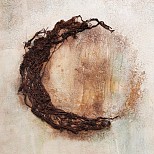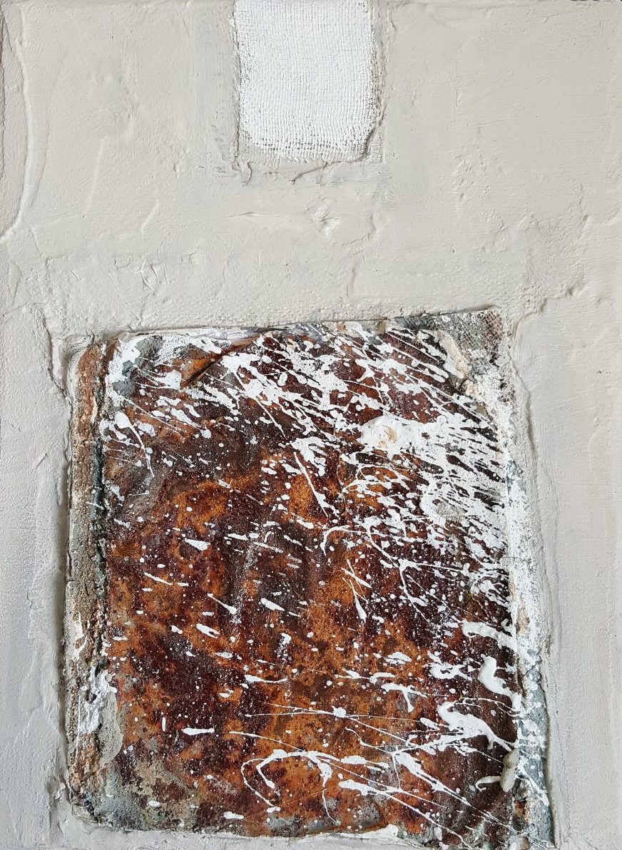 Ik hou van vergankelijkheid en ben altijd geboeid door roest en oxidatie. Dit verwerk ik in mijn mixedmediadoeken