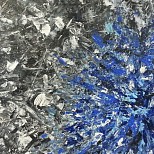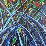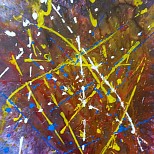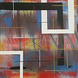 Een globale impressie van het schilderij "Onderweg" 110x110cm.