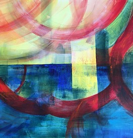 Een globale impressie van het schilderij "Het geluk 2020" 120x120cm.