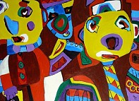 Eigen werk in de stijl van de Cobra-beweging uit jaren 50.