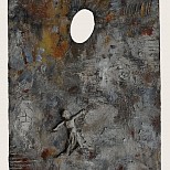 Abstract schilderijtje op doek in grijstinten, acrylverf.