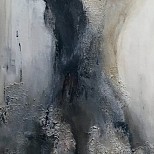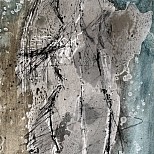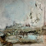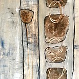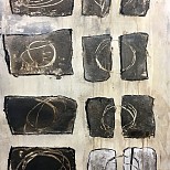 Een globale impressie van het schilderij "Out of the box" 90x90cm.