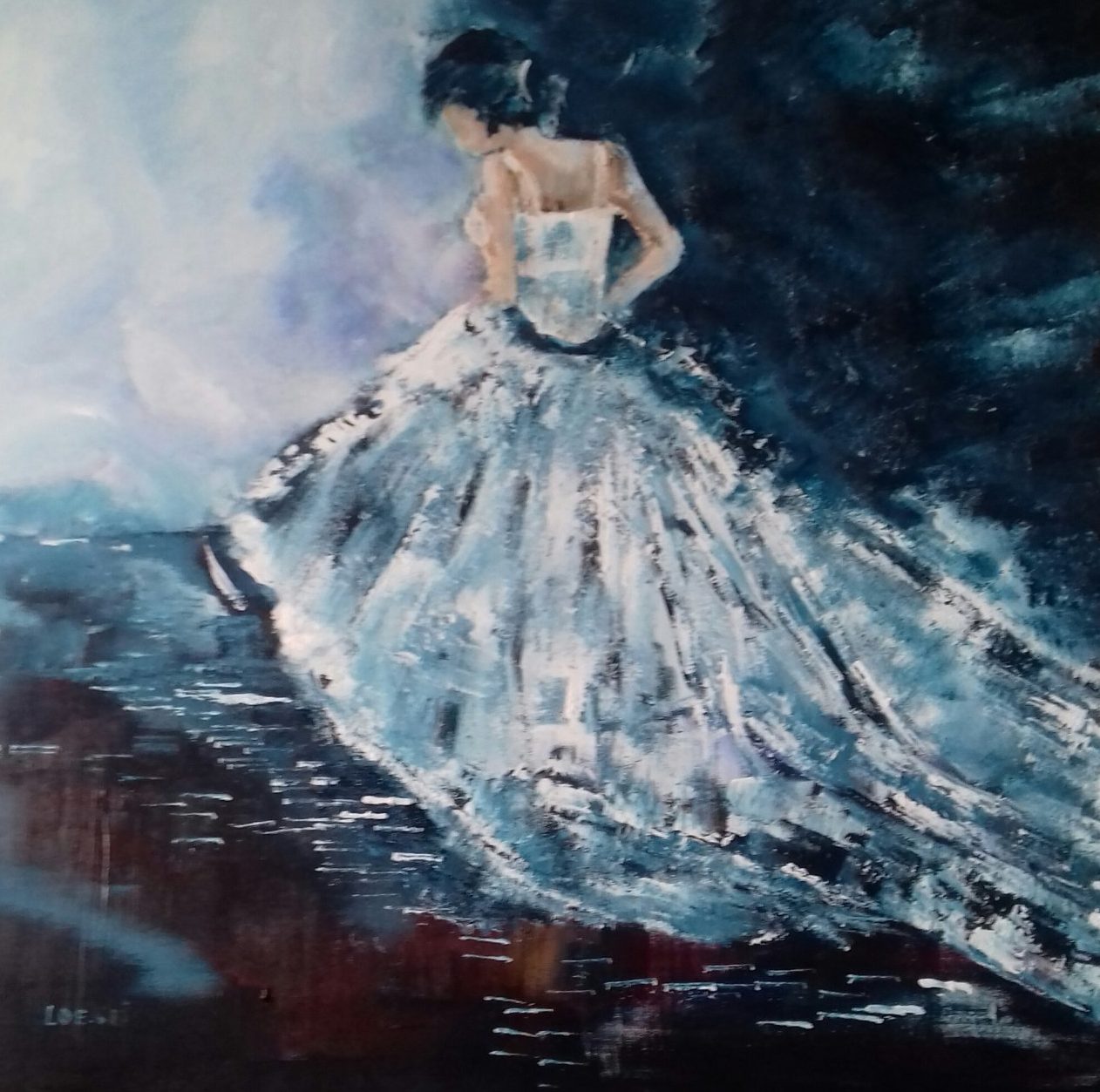 Een globale impressie van het schilderij "Feestelijk" 100x100cm.