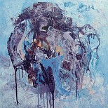 Een globale impressie van het schilderij "Zonder titel" 80x80cm.