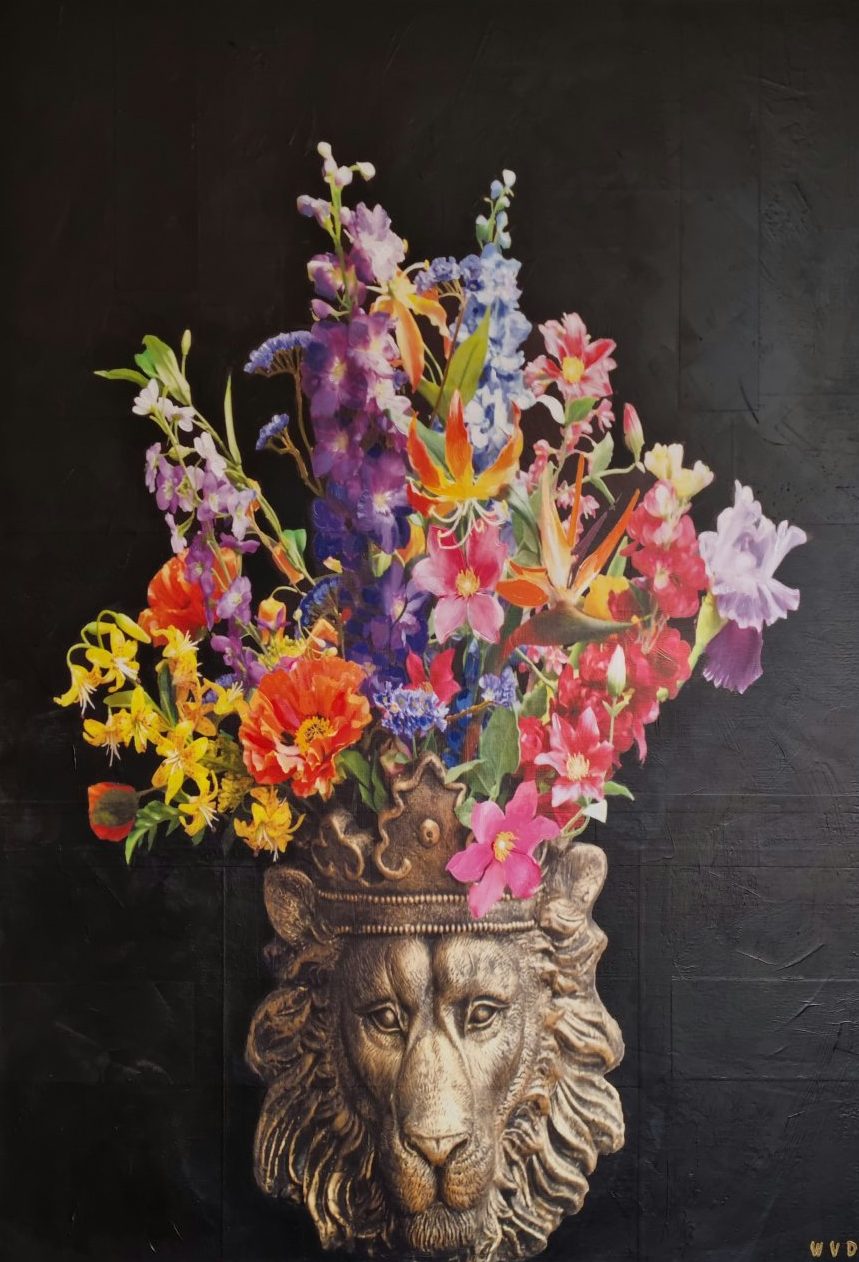 Een globale impressie van het schilderij "Lion Flowers" 90x130cm.