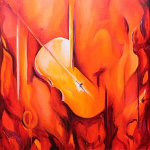 Een globale impressie van het schilderij "Lira da braccio" 100x100cm.