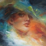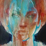 Groot schilderij gemaakt met acrylverf op doek. Het heeft een dik frame dat niet kan kromtrekken. Het is abstractie gecombineerd met het vrouwelijk gelaat. Het is heel expressief.