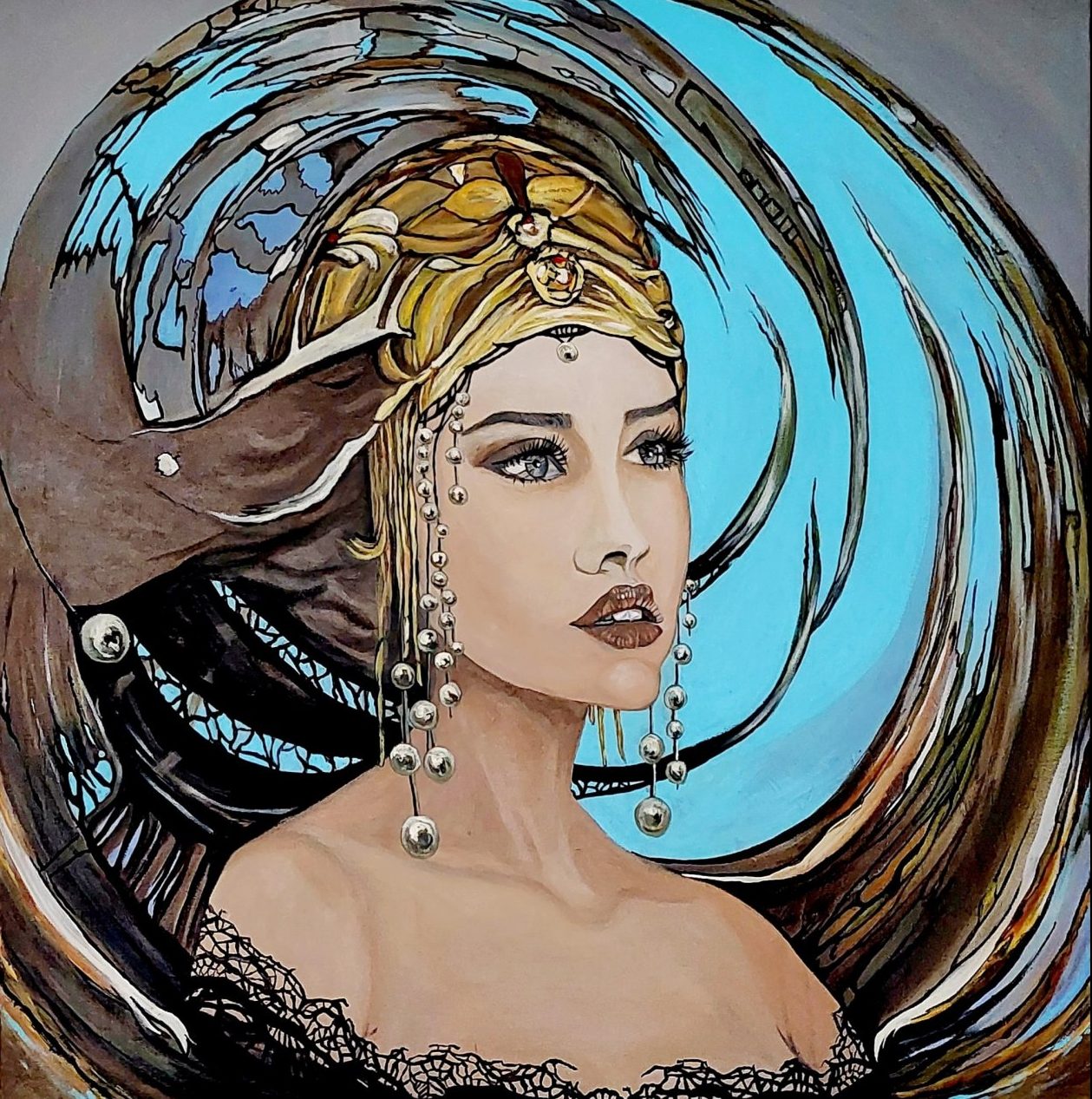 Een globale impressie van het schilderij "Dream Woman" 90x90cm.