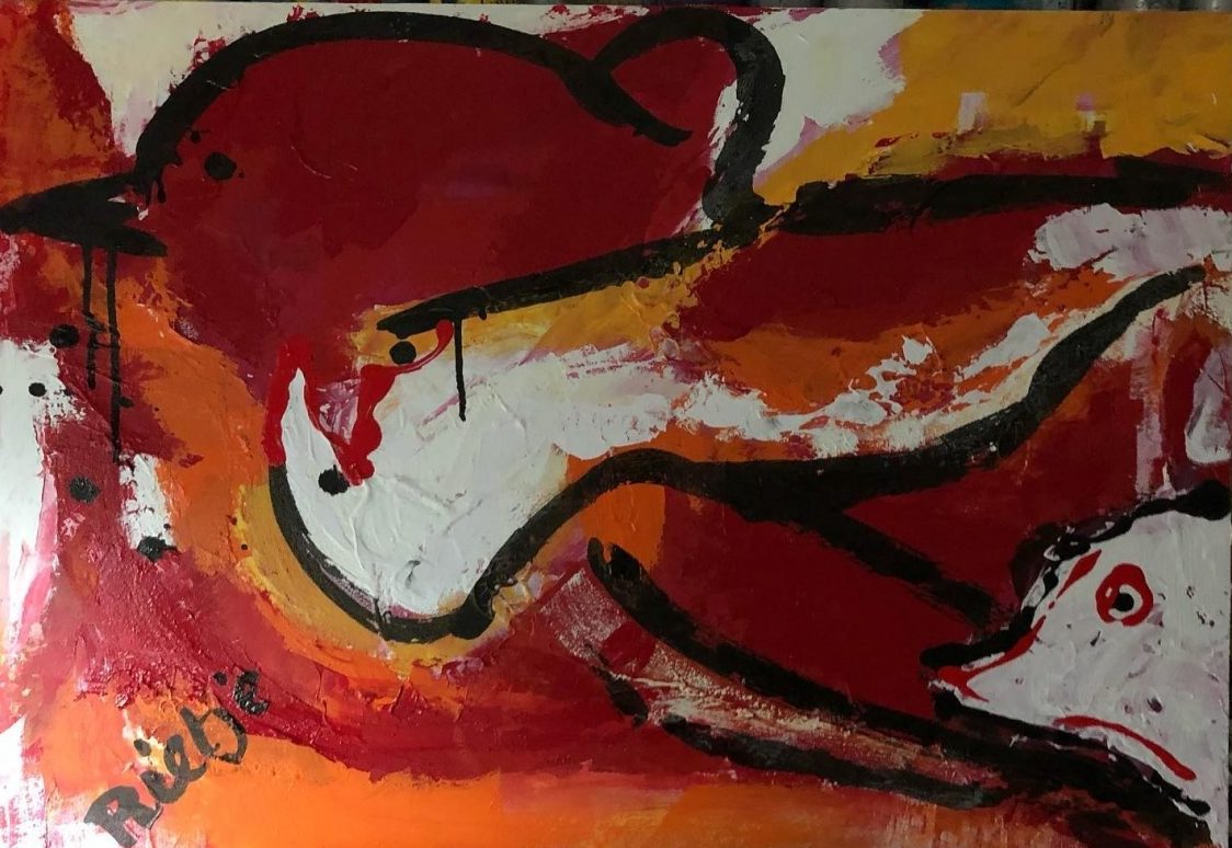 Dikke lagen acryl op 50×70 cm paneel met zwarte Tonio baklijst