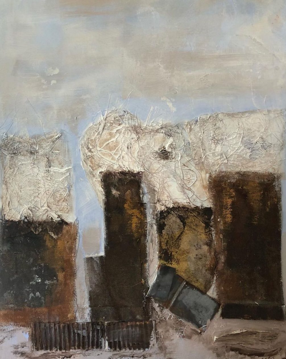 Mixed media op 50×70 cm doek. Afwerkt met vernislaag en in een handgemaakte baklijst.