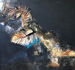 Een globale impressie van het schilderij "Vrije Vlucht" 70x70cm.