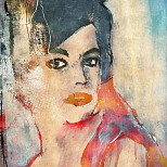 Mixed media schilderij met veel textuur van craquelé en roest, natuurlijke pigmenten.