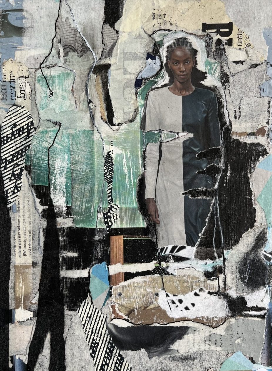 Een globale impressie van het schilderij "Decollage 2" 20x30cm.