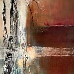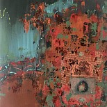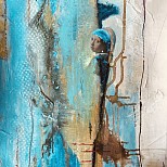 Mixed media (acryl, pigmenten, roest, karton, craquelé, wax) canvas board