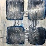 Een globale impressie van het schilderij "Figures - Walking" 14,5x22,5cm.