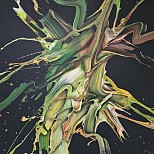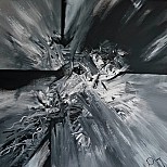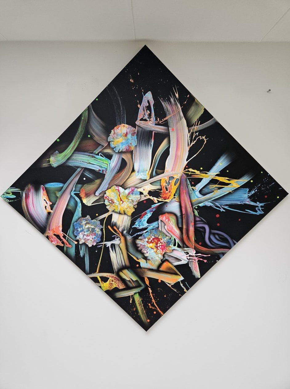 Een globale impressie van het schilderij "Unruliness" 100x100cm.